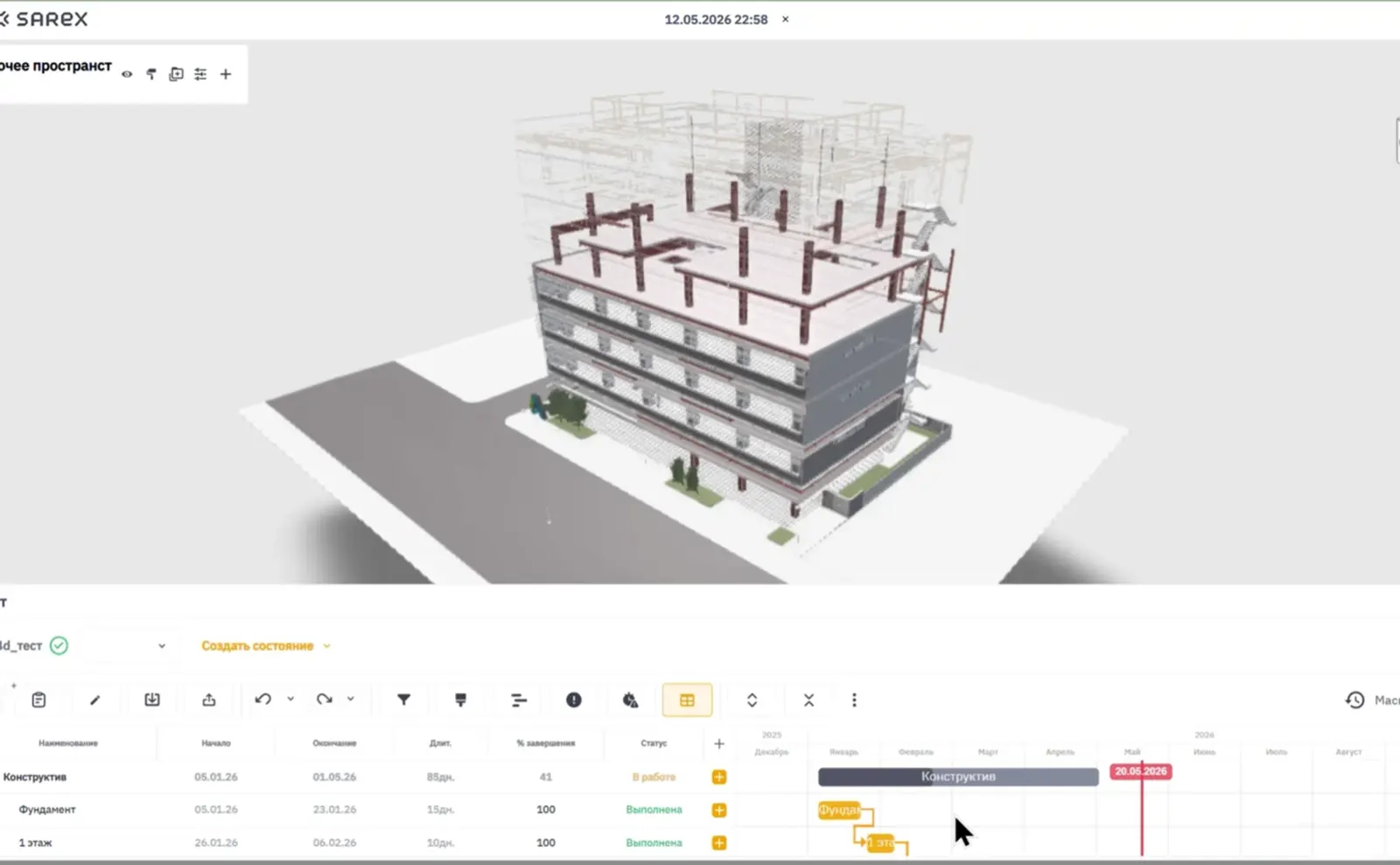 Используйте продукт для визуализации хода возведения объекта в режиме реального времени, объединяющий 3D-модель и календарный план строительства
