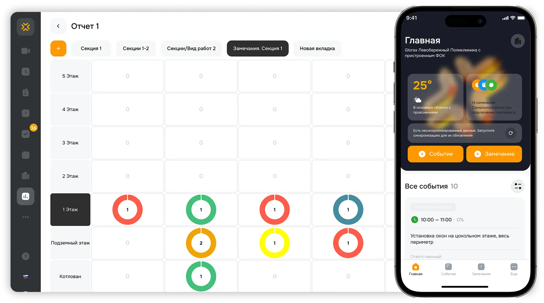 Да, Стройконтроль Sarex поддерживает работу в оффлайн-режиме — если на площадке нет Интернета, все замечания, фотографии и статусы сохранятся локально. После восстановления соединения данные автоматически синхронизируются с сервером
