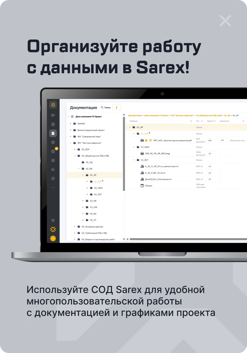 Sarex объединяет удобство готового продукта и гибкость настройки под задачи строительства. Платформа помогает быстро организовать среду для работы с документами, чертежами и графиками, без долгих доработок и задержек.