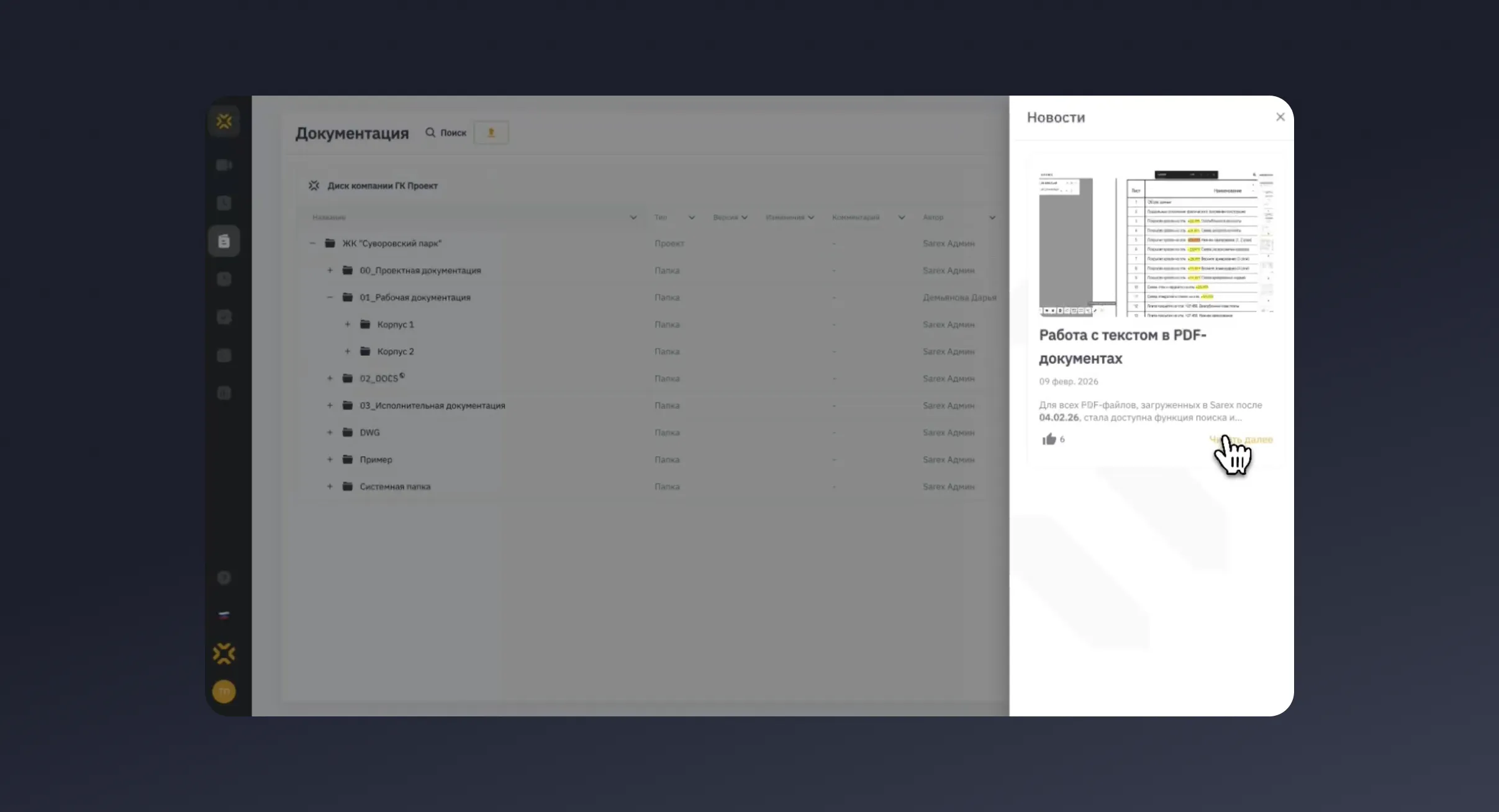 В 2025 году также был реализован целый ряд обновлений, влияющих на работу всей платформы Sarex. Среди наиболее значимых – улучшенный pdf-просмотрщик, который теперь позволяет быстро открывать файл практически любого размера за минимальное время. Высокую скорость работы с большими BIM-моделями обеспечивает собственный движок Sarex, полностью обновленный под новый внутренний стандарт BIM v3. Он отличается высокой производительностью при работе с форматами .nwd, .nwc, .rvt, .ifc и имеет лучшие параметры визуализации для комфортной работы с моделями любых размеров.