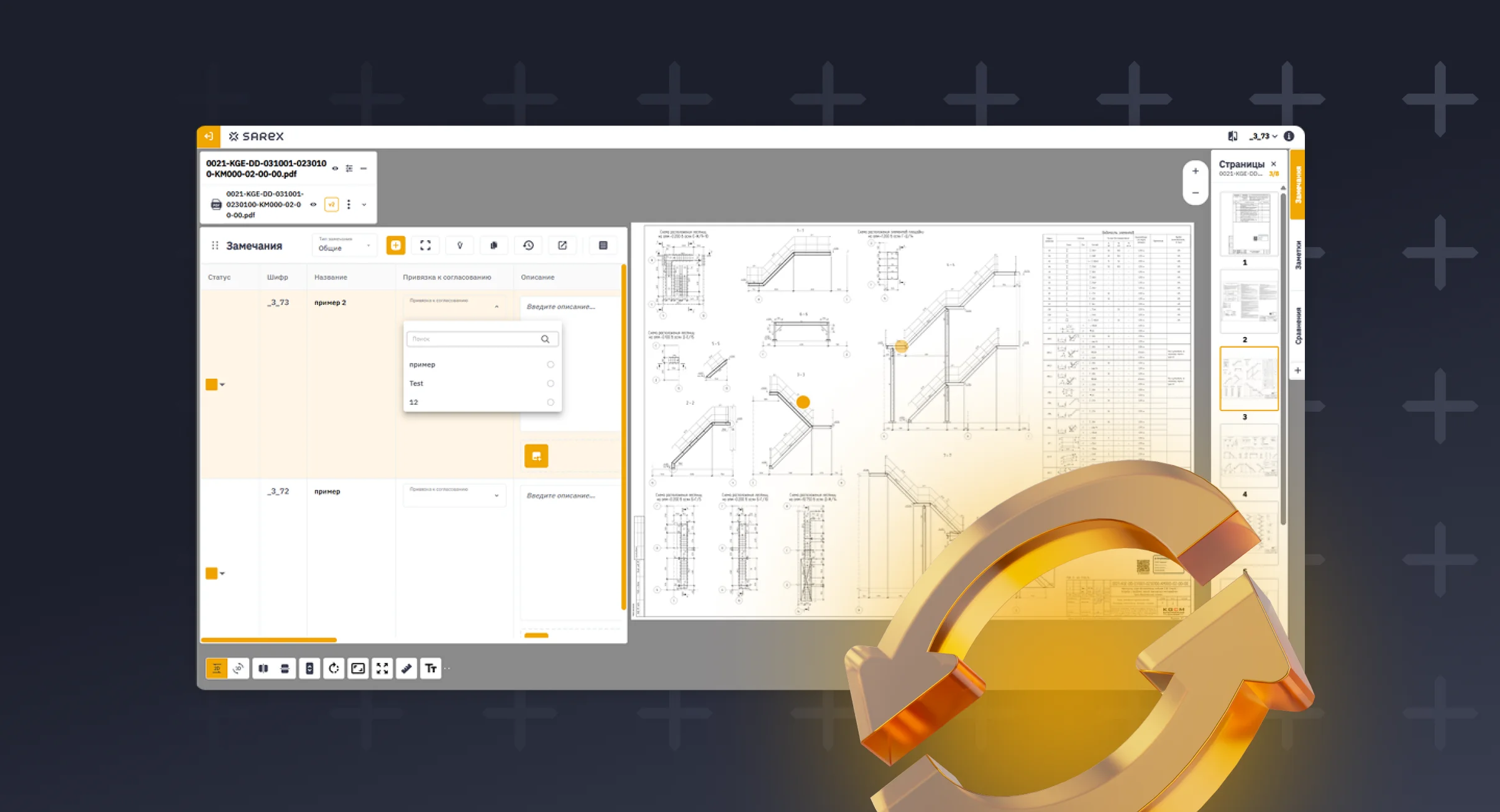 В просмотрщике Sarex появилась возможность накладывать плоские DWG-чертежи на 3D-сцену: BIM-модели, облака точек, поверхности.